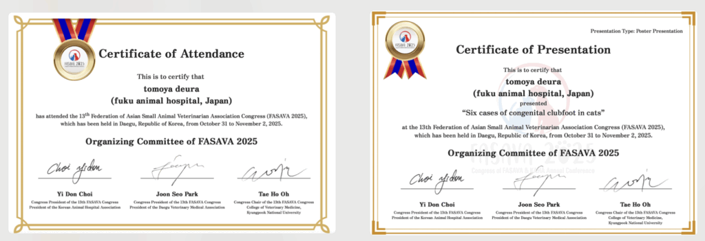 第98回 日本獣医麻酔外科学会「先天性内反足の猫の1例」